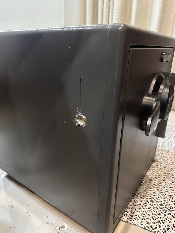 請注意,市面上 80% 的低價保險箱,標榜的是「防火」,而非「防盜」。 現實是: 這些防火櫃的材質是「塑膠外殼或薄鐵皮 + 灌注發泡水泥」。 它們的設計目的是在火災中稍微隔熱,部分也會經過廠內私人測試,但在物理攻擊面前不堪一擊。我們看過太多案例:竊賊直接把防火櫃抱走,或是現場用鐵製工具敲碎外殼(水泥會碎裂),就像剝雞蛋一樣,輕輕鬆鬆取出裡面的財物。